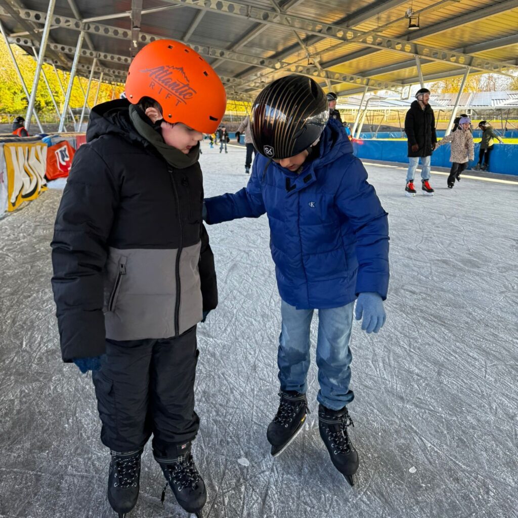 Vanaf het moment dat we bij Laco Glanerbrook aankwamen, hing er al een vrolijke en enthousiaste sfeer. Kinderen trokken hun schaatsen aan, maakten hun helmen vast en stonden te popelen om het ijs op te gaan. Ook de leerkrachten stapten zelf op de schaatsen. Tussen het veterstrikken, aanmoedigen, vasthouden en even opvangen bij de eerste glijmomenten door, groeide het vertrouwen zichtbaar.